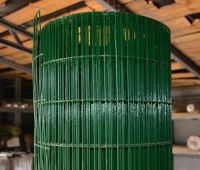 siatka powlekana tworzywem PCV po zgrzewaniu. Grubosc powloki wynosi 0,3 – 0,4 mm. Na zamowienie siatka przed powlekaniem moze zostac ocynkowana.